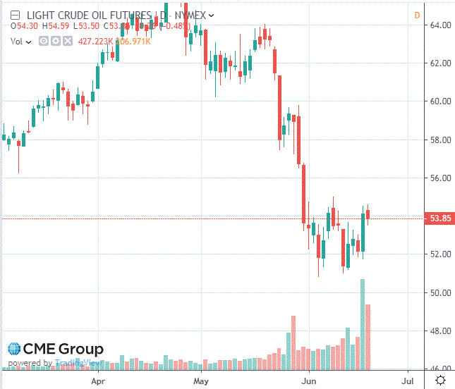 Стоимость августовского фьючерса на американскую легкую нефть марки WTI (Light Sweet Crude Oil) упала до 53,85 доллара за баррель на Нью-йоркской товарно-сырьевой бирже.