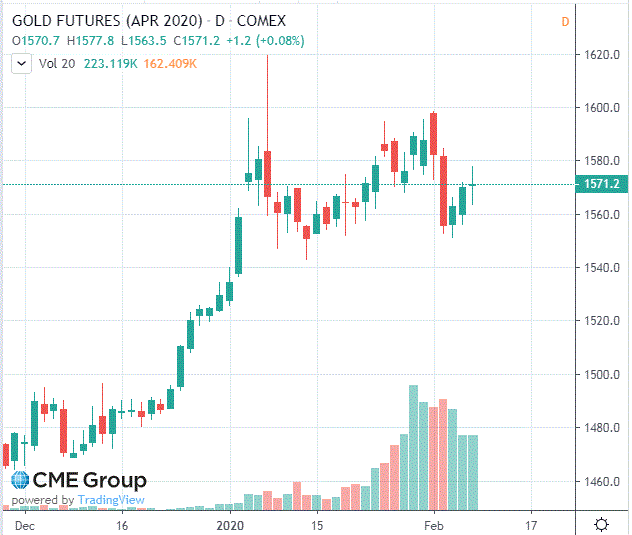 Стоимость апрельского фьючерса на золото на COMEX выросла до $1571,20 за унцию.