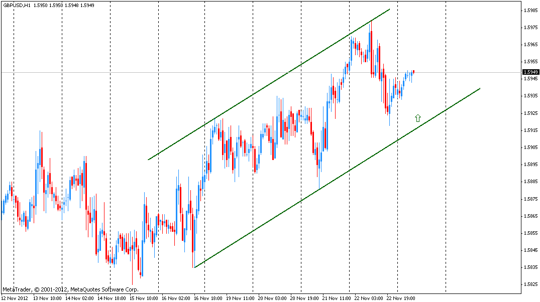 На часовом графике пара GBP/USD торгуется в восходящем канале:
