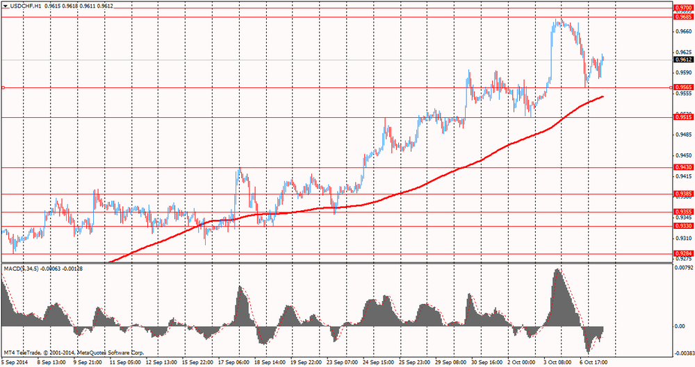 Сопротивление 1: Chf0.9685 (максимум 3 октября)