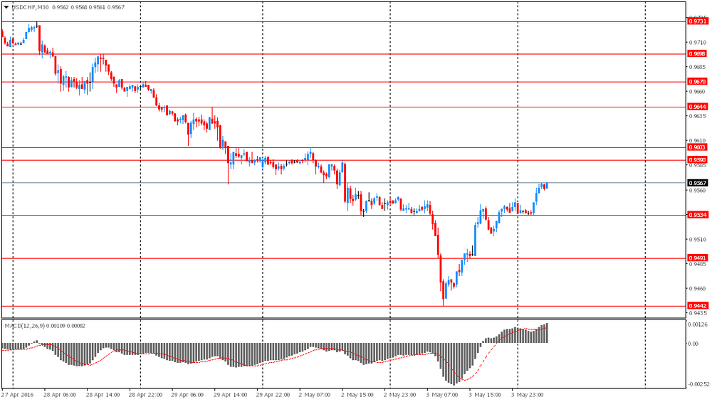 Сопротивление 2: Chf0.9645 (максимум европейской сессии 29 апреля)