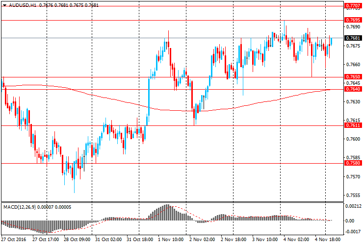 Сопротивление 1: $0.7695/0,7705 (максимумы 26 октября и 4 ноября)