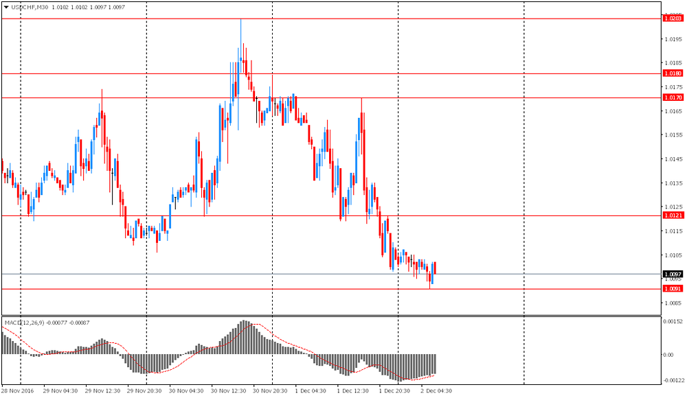 Сопротивление 1: Chf1.0120 (максимум американской сессии 1 декабря)