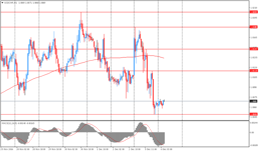 Сопротивление 1: Chf1.0115 (максимум американской сессии 5 декабря)