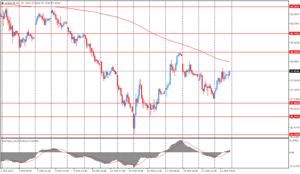 Сопротивление 1: ₽58.29 (максимум 17 февраля)