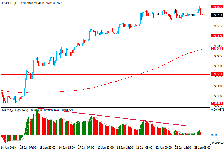 Сопротивления находятся на отметках: Chf0.9990, Chf1.0010, Chf1.0085