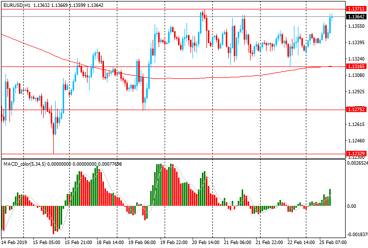 Основной сценарий продвижения пары - коррекция и снижение к $1.1315 (минимум 21-22 февраля, МА (200) Н1) и за тем к $1.1215-30 (минимумы 12 ноября и 15 февраля)