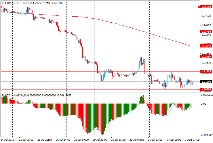 Альтернативный сценарий — прорыв сопротивления $1.2250 (максимум 31 июля) и МА (200) Н1 ($1.2305) и рост к $1.2380 (максимум 29 июля)