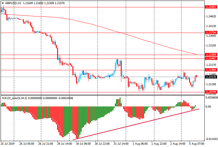 Альтернативный сценарий — прорыв сопротивления $1.2250 (максимум 31 июля) и МА (200) Н1 ($1.2270) и рост к $1.2380 (максимум 29 июля)
