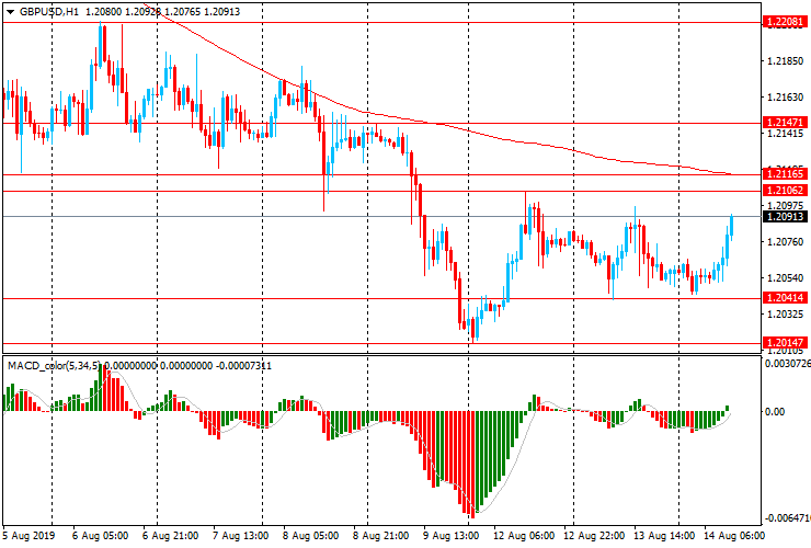 Альтернативный сценарий - прорыв области $1.2105-15 (максимум 12 августа, МА (200) Н1) и рост к $1.2150 (максимум 9 августа)