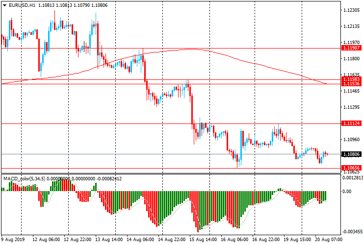Основной сценарий продвижения пары — прорвы поддержки $1.1065 (минимум 16 августа) и снижение к $1.1025 (минимум 1 августа).