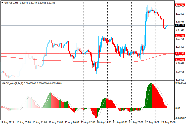 Основной сценарий продвижения пары - прорыв поддержки $1.2180 (максимум 16-21 августа) и снижение к $1.2105-25 (минимум 22 августа, МА (200) Н1)