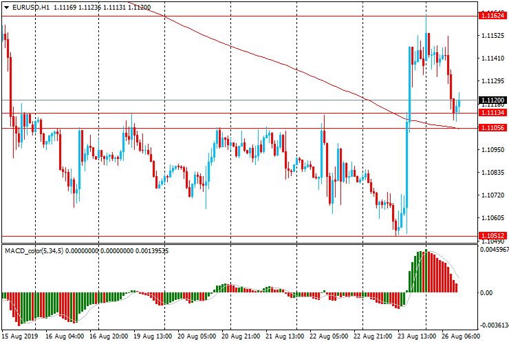 Основной сценарий продвижения пары — продолжение нисходящего движения, прорыв $1.1105-15 (максимумы 16-22 августа, МА (200) Н1) и снижение до $1.1050 (минимум 23 августа).