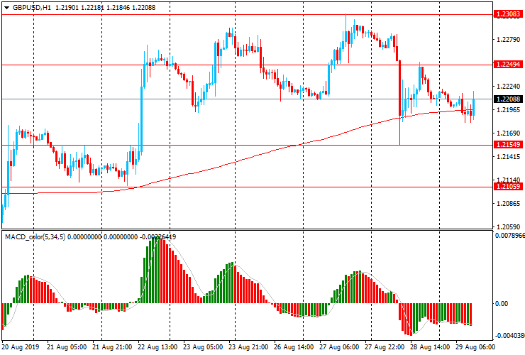 Основной сценарий продвижения пары - прорыв поддержки $1.2155 (минимум 28 августа) и снижение к $1.2105 (минимум 22 августа)