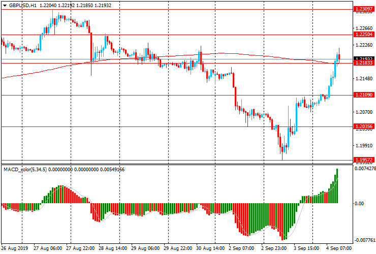 Пара GBP/USD продолжает начатый вчера рост, почти достигнув максимума 29 августа $1.2230. Пара поднялась до $1.2220, прорвав уровень скользящей средней МА (200) Н1 ($1.2185). Отметим, что на четырехчасовом графике пара тестирует МА (200) Н4 ($1.2200). Если GBP/USD продолжит рост и закрепиться выше данных уровне, то вероятно начало формирования нового восходящего тренда. Пока этого не произошло стоит продолжать придерживаться южного направления в торговле и искать точки входа на продажу.