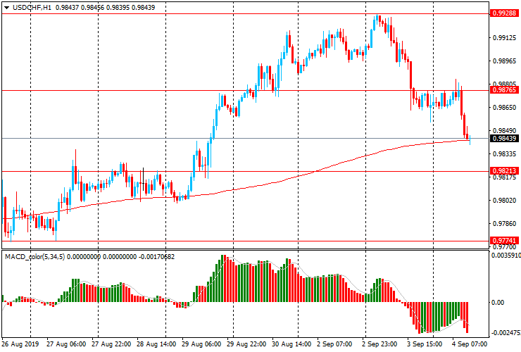 Альтернативный сценарий - прорыв поддержки Chf0.9820 (максимум 19 августа, МА (200) Н4) и снижение к Chf0.9775 (минимум 27 августа)
