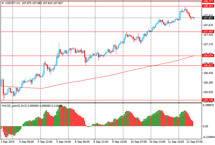 Пара USD/JPY торгуется в диапазоне Y107.80-108.15 - около шестинедельного максимума. USD/JPY поднялась выше уровня скользящей средней МА (200) Н1 (Y106.85) и выше МА (200) Н4 (Y106.60), указывая на переход пары под контроль быков. В этой ситуации стоит начать продолжать придерживаться северного направления в торговле и искать точки входа на покупку.