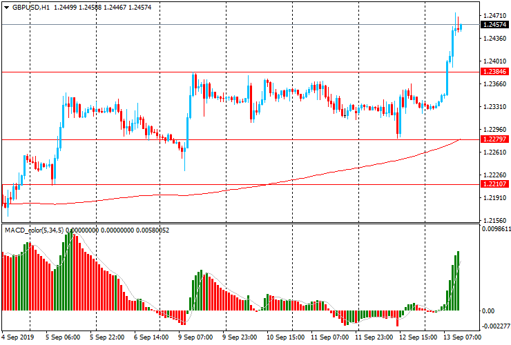 Альтернативный сценарий - прорыв поддержки $1.2385 (максимум 9-10 сентября) и снижение к $1.2280 (минимум 12 сентября, МА (200) Н1)
