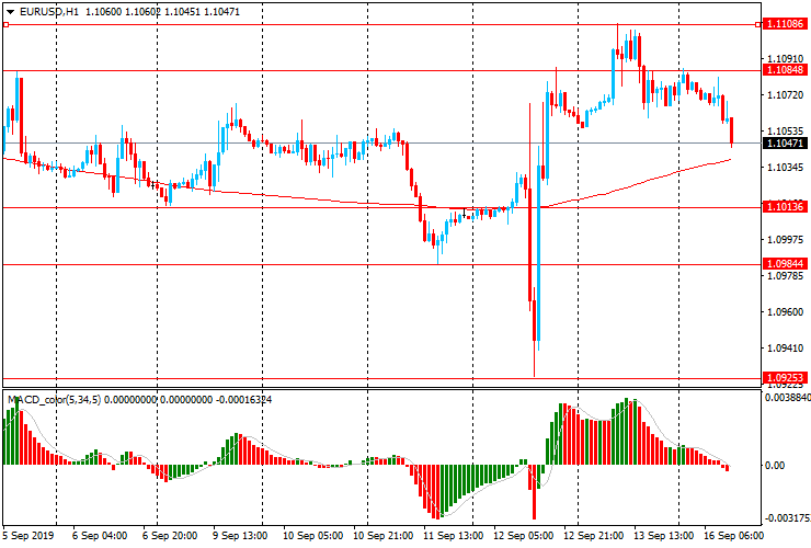 Пара EUR/USD торгуется со снижением, после роста в пятницу почти до максимума 27 августа ($1.1110). Пара снизилась до $1.1045. EUR/USD остается выше уровня скользящей средней МА (200) Н1 ($1.1040), и на четырехчасовом графике опустилась ниже МА (200) Н4 ($1.1090). Пара корректируется и лишь прорыв МА (200) Н1 нацелит ее на снижение к $1.0925 (минимум 12 сентября).