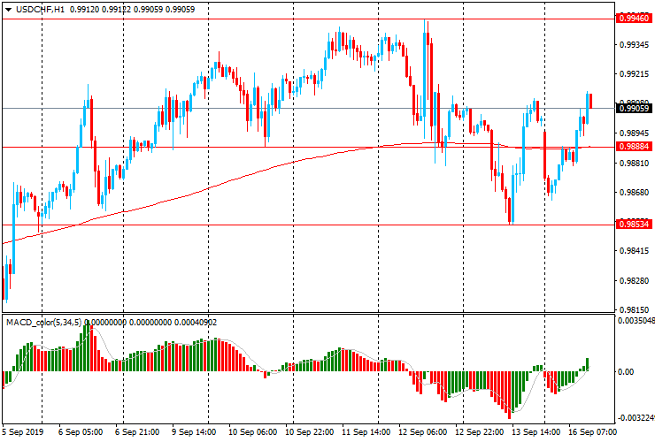 Пара USD/CHF, после снижения с начала торгов до Chf0.9865, начала расти, полностью вернув утраченные ранее позиции. Пара выросла к Chf0.9910. USD/CHF поднялась выше уровня скользящей средней МА (200) Н1 (Chf0.9890), но на четырехчасовом графике торгуется выше МА (200) Н4 (Chf0.9825), оставаясь под контролем быков. В этой ситуации стоит придерживаться северного направления и искать точки выхода на покупку.
