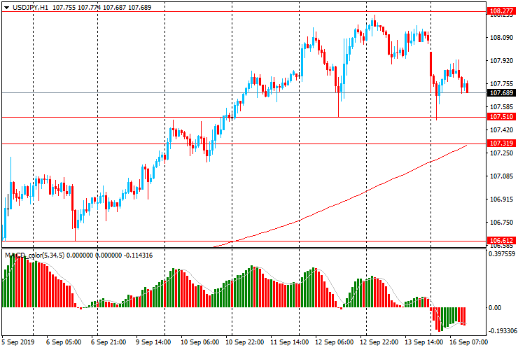 Пара USD/JPY резко снизилась с начала торгов до минимума 12 сентября Y107.50. Но вскоре пара восстановила часть утраченных позиций и выросла к Y107.75. USD/JPY продолжает торговаться выше уровня скользящей средней МА (200) Н1 (Y107.30) и выше МА (200) Н4 (Y106.55), оставаясь под контролем быков. В этой ситуации стоит продолжать придерживаться северного направления в торговле и искать точки входа на покупку.