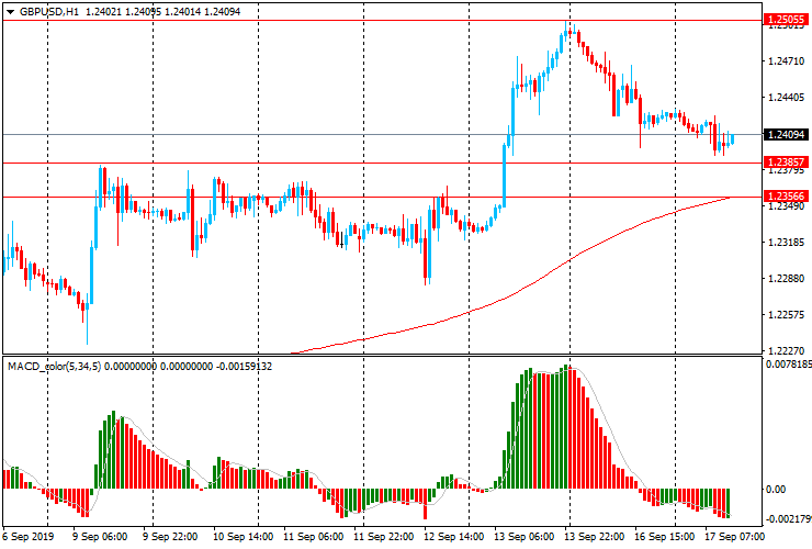 Альтернативный сценарий - прорыв поддержки $1.2385 (максимум 9-10 сентября) и МА (200) Н1 ($1.2255) и снижение к $1.2210 (минимум 5 сентября)