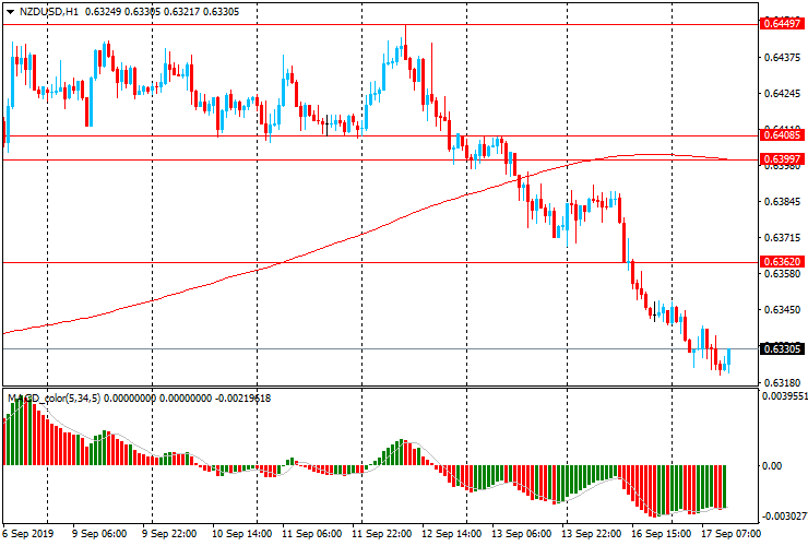 Пара NZD/USD торгуется со снижением после того как в течение недели пара торговалась в диапазоне $0.6410-50. сегодня пара достигла минимума 4 сентября $0.6320. NZD/USD опустилась ниже уровня скользящей средней МА (200) Н1 ($0.6400), и на четырехчасовом графике торгуется немного ниже МА (200) Н4 ($0.6410). В этой ситуации стоит придерживаться южного направления в торговле и искать точки входа на продажу.