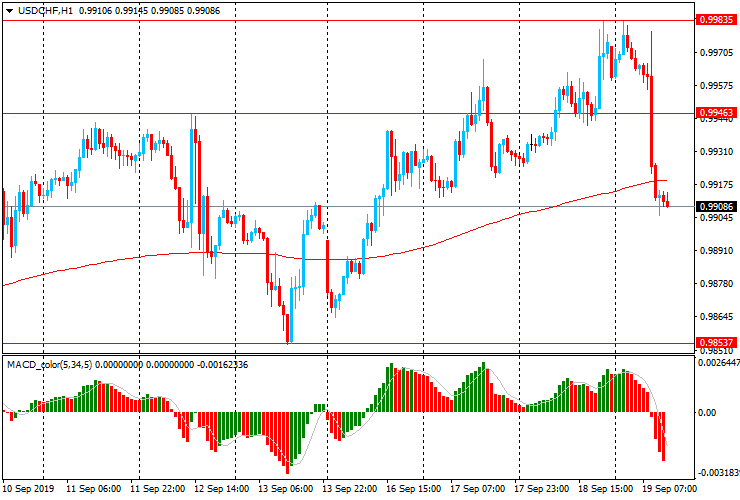 Альтернативный сценарий - прорыв закрепление ниже МА (200) Н1 (Chf0.9920) и нисходящее движение к Chf0.9855 (минимум 13 сентября)