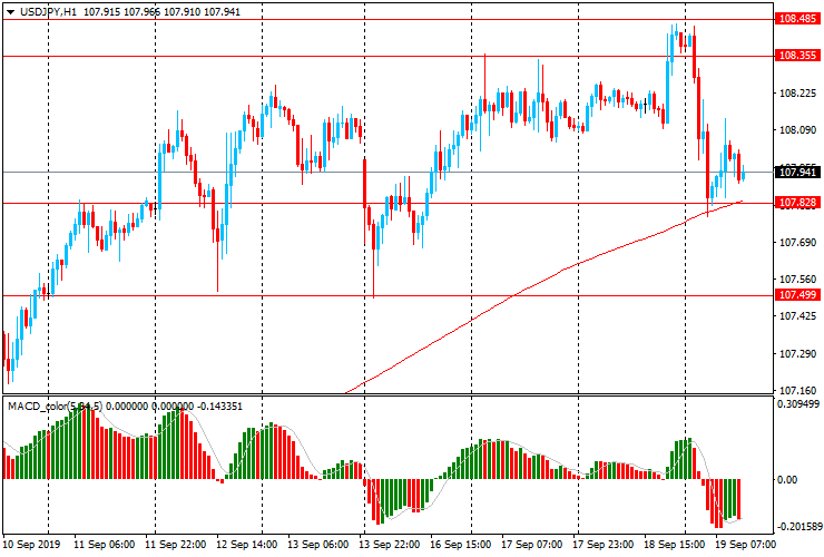 Пара USD/JPY торгуется со снижением, отступив от семинедельного максимума Y108.50, достигнутого в ходе вчерашних торгов. USD/JPY продолжает торговаться выше уровня скользящей средней МА (200) Н1 (Y107.80) и выше МА (200) Н4 (Y106.60), оставаясь под контролем быков. В этой ситуации стоит продолжать придерживаться северного направления в торговле и искать точки входа на покупку.