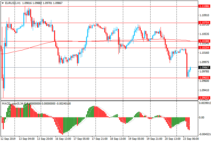 Основной сценарий продвижения пары - прорыв сессионного минимумам $1.0965 и снижение к $1.0925 (минимум 12 сентября)