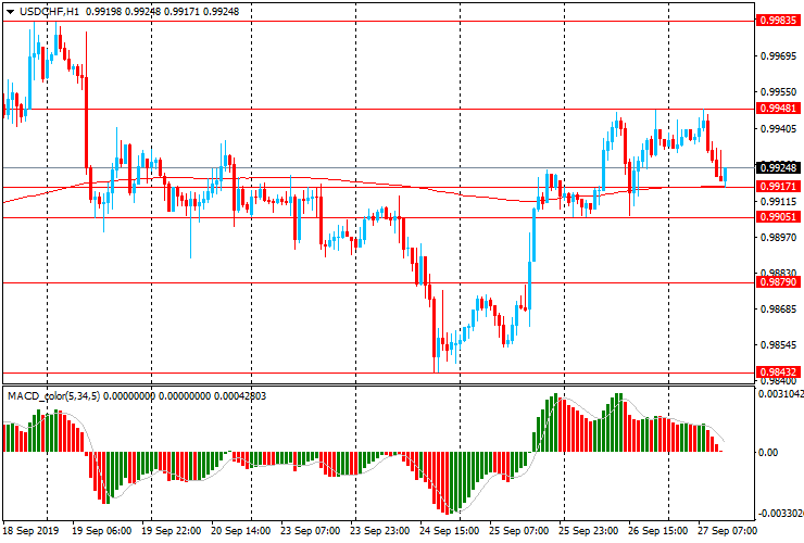 Пара USD/CHF немного снизилась до Chf0.9920, отступив от вчерашнего максимума и максимума 12 сентября (Chf0.9950). USD/CHF остается выше уровня скользящей средней МА (200) Н1 (Chf0.9920), а на четырехчасовом графике выше МА (200) Н4 (Chf0.9860). В этой ситуации стоит продолжать придерживаться северного направления и искать точки выхода на покупку.