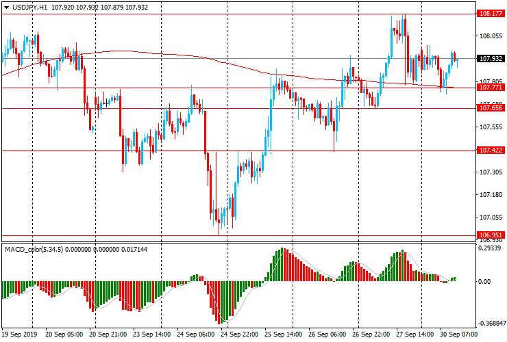 Пара USD/JPY в диапазоне Y107.75-Y108.00 после роста в пятницу к Y108.20. USD/JPY торгуется немного выше уровня скользящей средней МА (200) Н1 (Y107.75), и продолжает торговаться значительно выше МА (200) Н4 (Y106.95), оставаясь под контролем быков. В этой ситуации стоит продолжать придерживаться северного направления в торговле и искать точки входа на покупку.