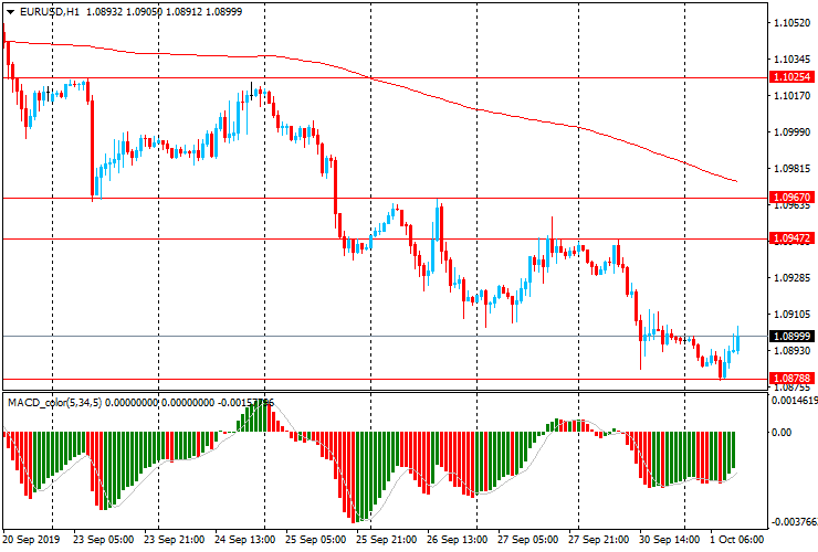 Альтернативный сценарий подразумевает прорыв сопротивления $1.0950-70 (максимумы 26-30 сентября) и МА (200) Н1 ($1.0975) и рост к $1.1025 (максимум 23-24 сентября).