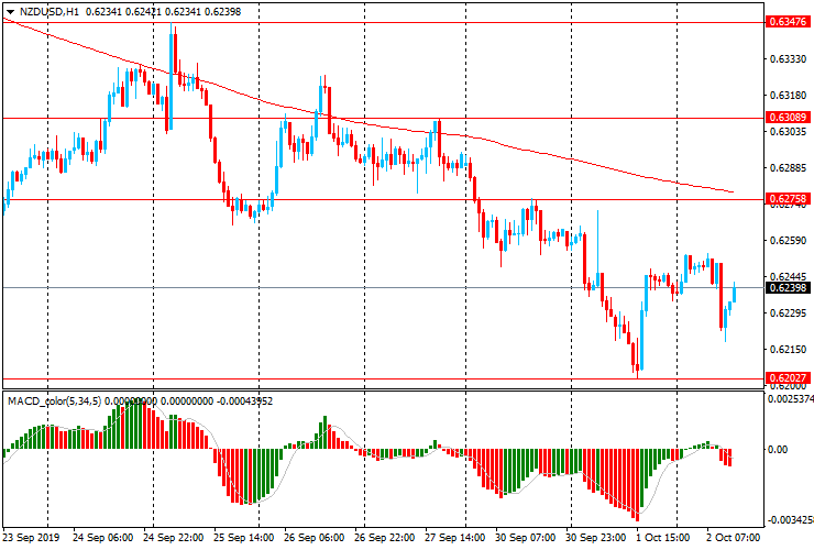 Альтернативный сценарий - рост к $0.6275 (максимум американской сессии 30 сентября, МА (200) Н1) и за тем к $0.6310 (максимум 27 сентября)