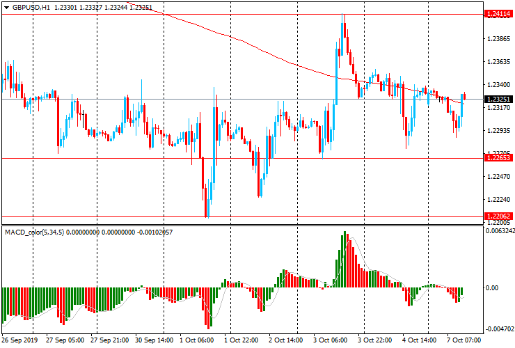 Пара GBP/USD торгуется в узком диапазоне $1.2290-1.2335 - ниже недельного максимума $1.2410, достигнутого на прошлой неделе в четверг. GBP/USD тестирует уровень скользящей средней МА (200) Н1 ($1.2325), и на четырехчасовом графике торгуется немного выше МА (200) Н4 ($1.2310). Пара пытается определиться с направлением.