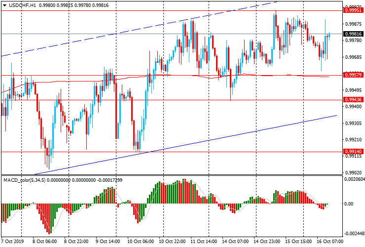 Альтернативный сценарий - прорыв Chf0.9945-60 (минимум 14-15 октября, МА (200) Н1) и снижение к Chf0.9900-15 (минимумы 26-27 сентября и 8-10 октября)