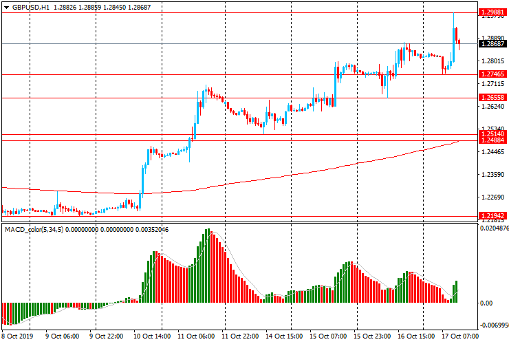 Пара GBP/USD резко выросла, достигнув пятимесячного максимума $1.2990, но вскоре немного снизилась и торгуется около вчерашнего максимума $1.2870. GBP/USD торгуется значительно выше уровня скользящей средней МА (200) Н1 ($1.2470) и выше МА (200) Н4 ($1.2380), оставаясь под полным контролем быков. В этой ситуации стоит придерживаться северного направления в торговле и искать точки выхода на покупку