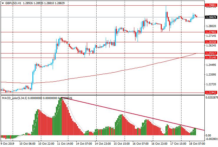 Пара GBP/USD торгуется в узком диапазоне $1.2835-1.2915 после роста вчера до пятимесячного максимума $1.2990. GBP/USD торгуется значительно выше уровня скользящей средней МА (200) Н1 ($1.2550) и выше МА (200) Н4 ($1.2405), оставаясь под полным контролем быков. В этой ситуации стоит придерживаться северного направления в торговле и искать точки выхода на покупку.