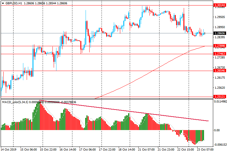 Пара GBP/USD торгуется в узком диапазоне $1.2835-1.2900 - немного ниже более чем пятимесячного максимума $1.3015, достигнутого понедельник. GBP/USD торгуется выше уровня скользящей средней МА (200) Н1 ($1.2790) и выше МА (200) Н4 ($1.2475), оставаясь под полным контролем быков. В этой ситуации стоит придерживаться северного направления в торговле и искать точки выхода на покупку.