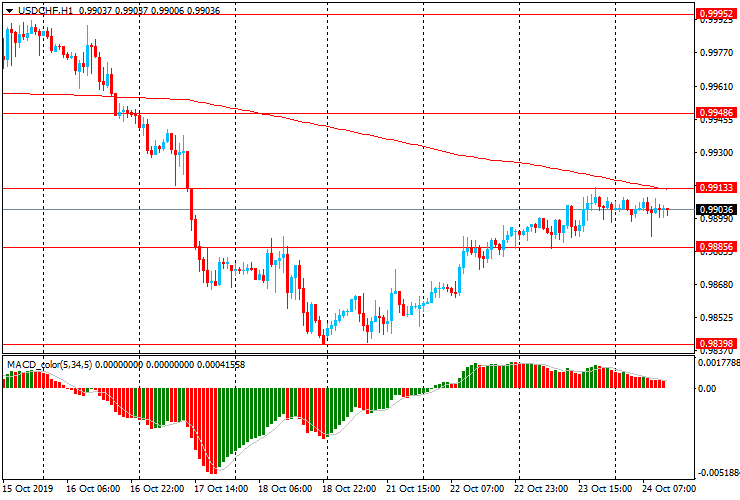 Альтернативный сценарий - прорыв вчерашнего максимума и МА (200) Н1 (Chf0.9915) и рост к Chf0.9950 (максимум 17 октября)