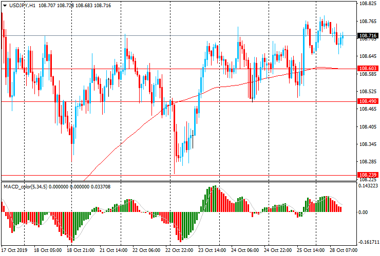 Альтернативный сценарий предполагает прорыв области Y108.50-60 (минимум 24-25 октября, МА (200) Н1) и снижение к Y108.25 (минимум 23 октября)