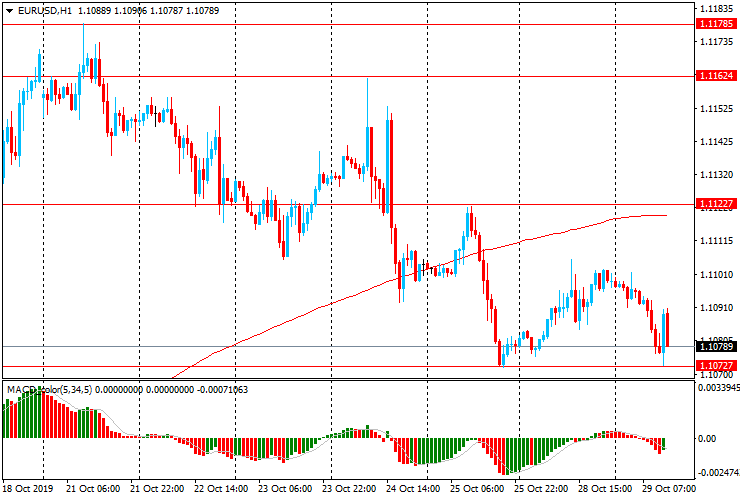 Пара EUR/USD торгуется со снижением, полностью утратив набранные вчера позиции. Пара снизилась к минимуму 25 октября $1.1070 после роста вчера к $1.1105. EUR/USD торгуется немного ниже уровня скользящей средней МА (200) Н1 ($1.1120), но на четырехчасовом графике торгуется значительно выше МА (200) Н4 ($1.1030), оставаясь пока под контролем быков. В этой ситуации стоит придерживаться северного направления в торговле и искать точки выхода на покупку.