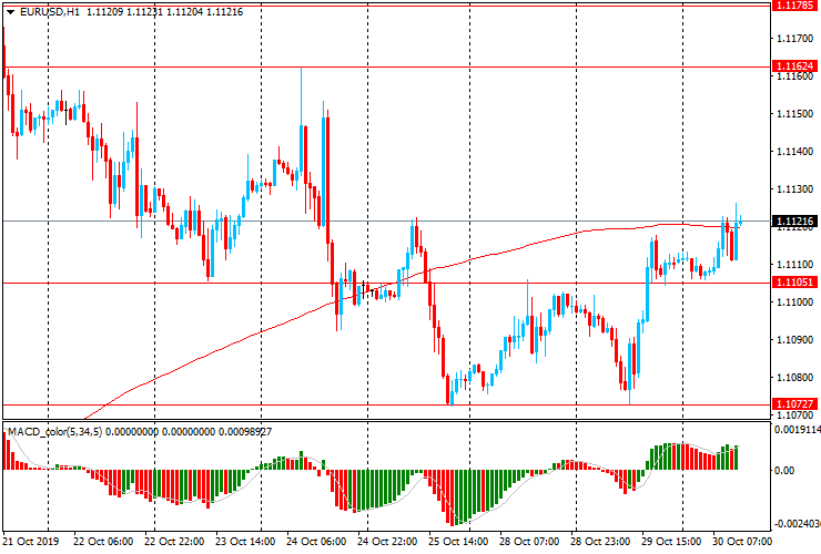 Пара EUR/USD торгуется с ростом вновь восстановившись после падения с начала вчерашних торгов. Пара выросла к максимуму 25 октября $1.1125 после снижения вчера к $1.1070. EUR/USD тестирует уровень скользящей средней МА (200) Н1 ($1.1120), но на четырехчасовом графике торгуется значительно выше МА (200) Н4 ($1.1030), оставаясь пока под контролем быков. В этой ситуации стоит придерживаться северного направления в торговле и искать точки выхода на покупку.
