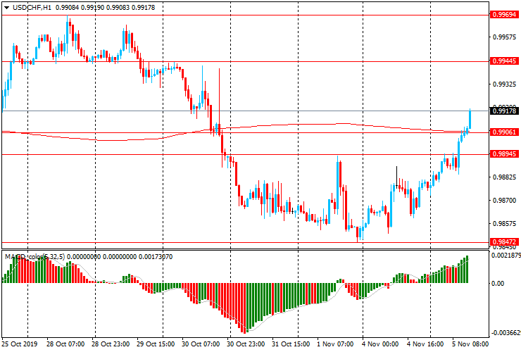 Пара USD/CHF торгуется с ростом, еще больше отступив от более чем недельного минимума Chf0.9850, достигнутого в пятницу. Сегодня пара выросла к Chf0.9920. USD/CHF поднялась немного выше уровня скользящей средней МА (200) Н1 (Chf0.9905), но на четырехчасовом графике продолжает торговаться немного ниже МА (200) Н4 (Chf0.9925). Если пара прорвет данный уровень, вероятно начало формирования нового восходящего тренда. Пока этого не произошло стоит продолжать придерживаться южного направления в торговле и искать точки выхода на продажу.