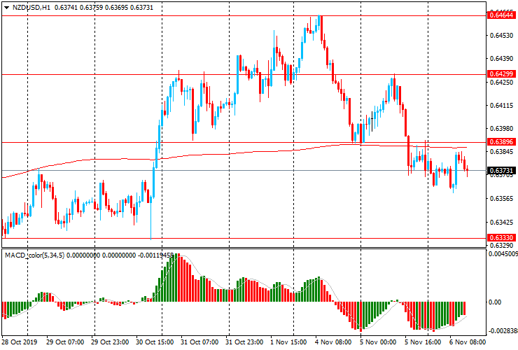 Основной сценарий продвижения пары - прорыв $0.6385-90 (минимум 4 ноября, МА (200) Н1) и рост к $0.6430 (максимум 5 ноября)