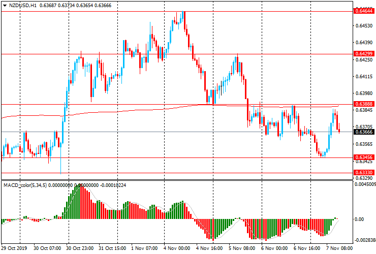 Основной сценарий продвижения пары - прорыв $0.6390 (максимум 6 ноября, сессионный максимум, МА (200) Н1) и рост к $0.6430 (максимум 5 ноября)
