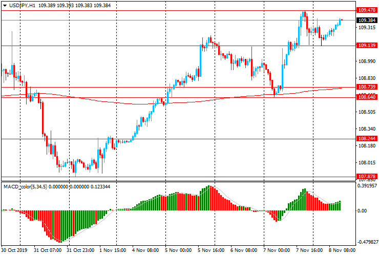 Альтернативный сценарий предполагает прорыв сессионного минимума Y109.15 и нисходящее движение к Y108.65-75 (минимум 7 ноября, МА (200) Н1)