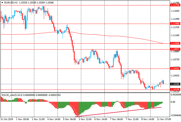 Сопротивления находятся на отметках: $1.1055, $1.1090-1.1100, $1.1140
