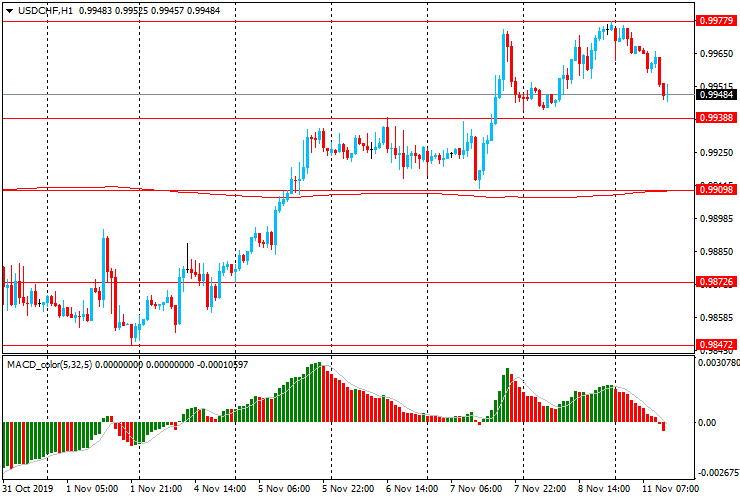 Альтернативный сценарий - прорыв поддержки Chf0.9940 (максимум 6 ноября) и снижение к Chf0.9910 (минимум 7 ноября, МА (200) Н1)
