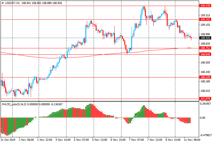Пара USD/JPY торгуется со снижением отступив от более чем трехмесячного максимума Y109.50, достигнутого в конце прошлой недели. Пара опустилась до Y108.90. USD/JPY торгуется выше уровня скользящей средней МА (200) Н1 (Y108.75), и на четырехчасовом графике выше МА (200) Н4 (Y108.25), оставаясь под контролем быков. В этой ситуации стоит придерживаться северного направления в торговле и искать точки выхода на покупку.